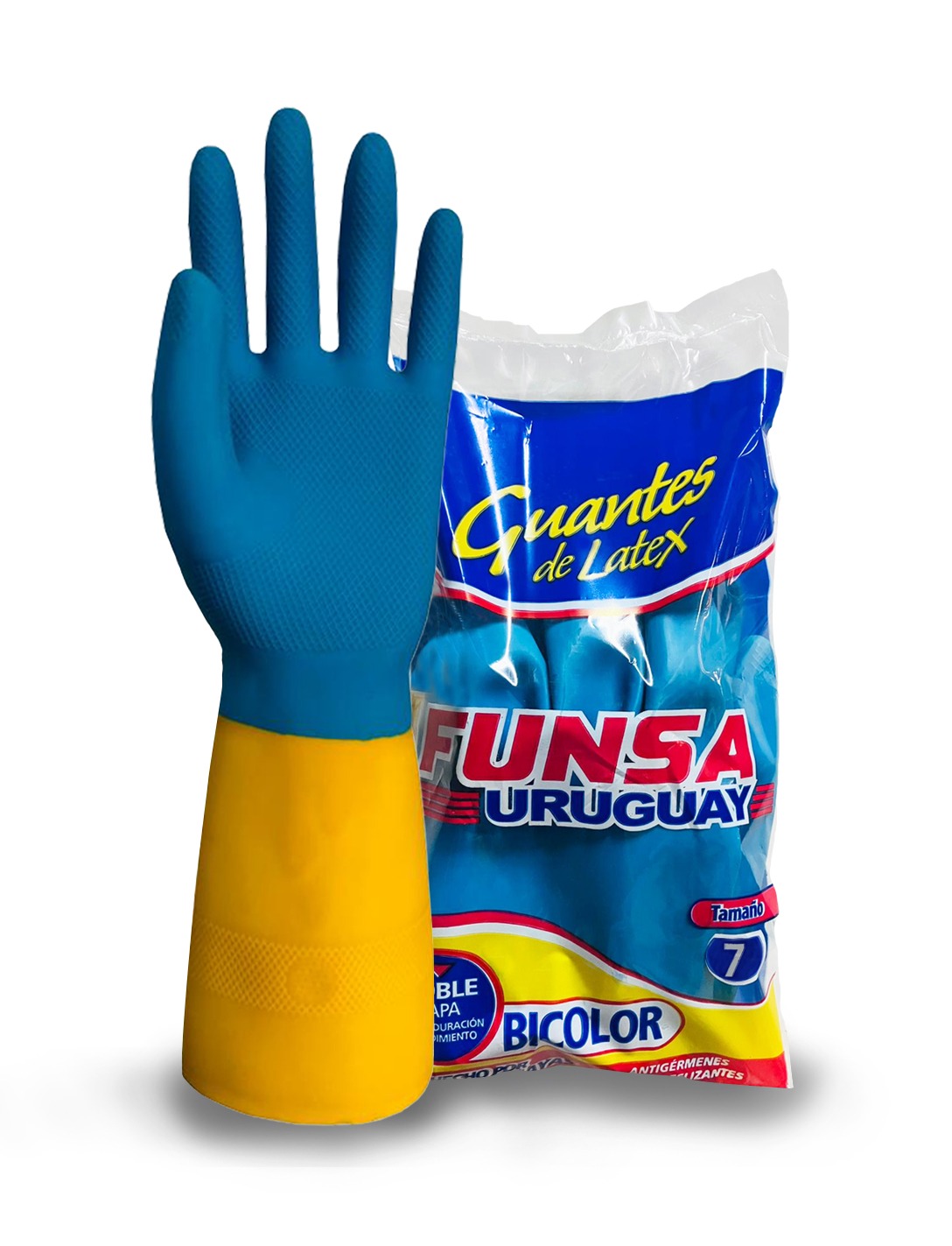 La marca Funsa pertenece a una de las cooperativas uruguayas con mayor trayectoria en Uruguay. Producen los guantes de látex para uso doméstico líderes en el mercado. Se caracterizan por ser fabricados con un mínimo de 94% de látex 100% natural de la mejor calidad con tratamiento de clorado que evita la formación de microorganismos y el uso de talco en su superficie. Se presentan en 3 variedades, con talles que van del 7 al 101/2, y con diseño anatómico que ofrece comodidad y evita la fatiga muscular. Al día de hoy poseemos la representación y distribución de la marca para todo el territorio nacional.